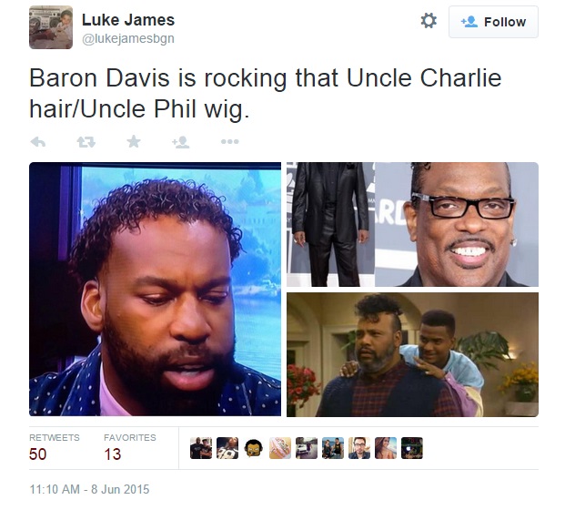Since his appearance on ESPN First Take, CelebNMusic247.com got word that Twitter has been sounding off with some jokes about Davis hair: