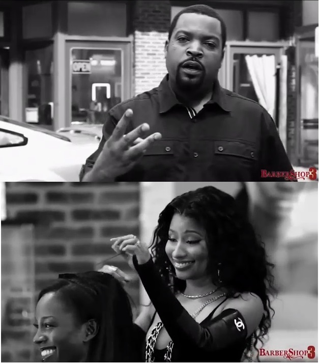 “Barbershop 3 is hitting theaters in early 2016. Get a first look at the film, featuring appearances by @NickiMinaj, @Common, @CedTheEntertainer, and many more at icecube.com“