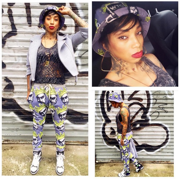 Back Ink Crew is in the off season, but Sky is keeping it funky with her dope fly style as Sky Rocks Tupac Biggie Set and bucket hat.