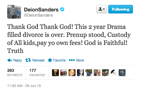 Deion Sanders is joyfully yelling off roof tops since he and his now ex-wife Pilar Sanders has finally been settled their divorce.