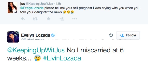 Now Evelyn confirms to her Twitter followers that she lost the baby: