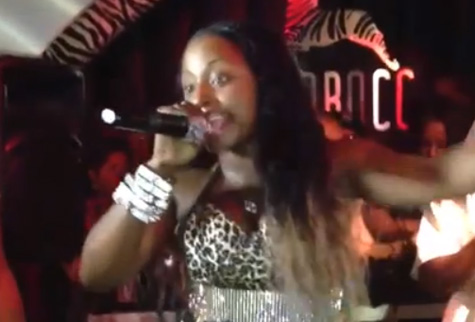 Foxy Brown loses her footing while performing at Gay Pride weekend in NYC.