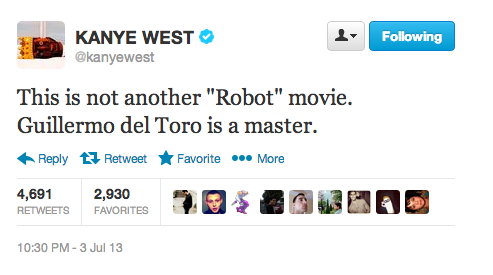 Kanye had this to say about Guillermo Del Toro’s new summer blockbuster.
