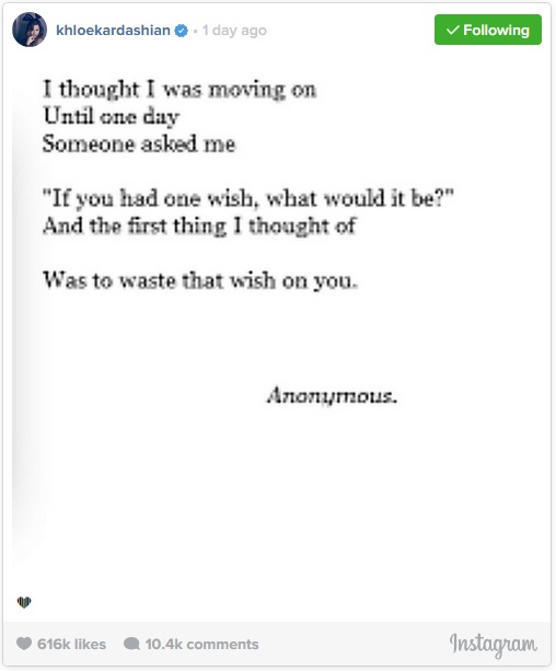 Khloé Kardashian Posts Cryptic Moving On Meme!!!