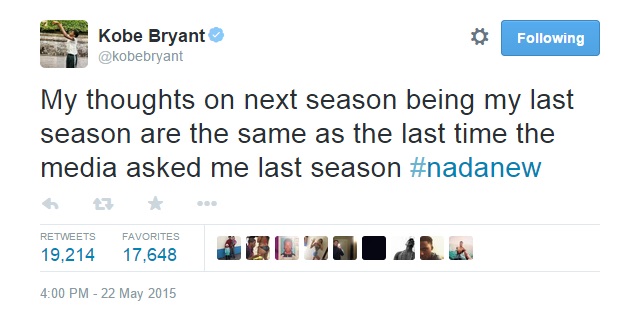 Nadanew” or nothing new suggests Bryant has no retirement plans as of yet, but Kupchak maintained there has been no talk of the star guard continuing to play beyond the 2015-2016 season.