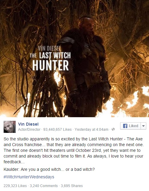 Will Vin Diesel sign on for part 2 of The Last Witch Hunter?