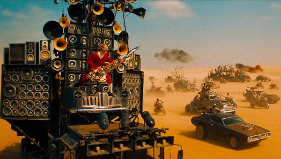 One of our favorite cars in the film was the guitar player with speakers. Not only was it ingenious work of art, it was innovative, inventive and like any king with his thrown, he needs his theme music (the court jester). Miller finds a way to make Fury Road’s carnage inventive during the high-speed action sequences filled with twisted metal and pandemonium.