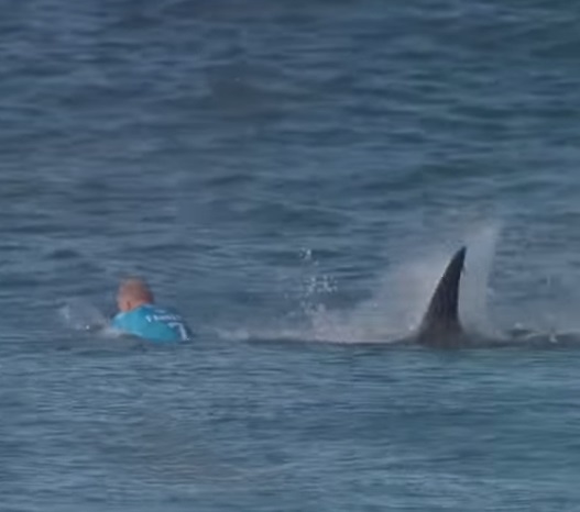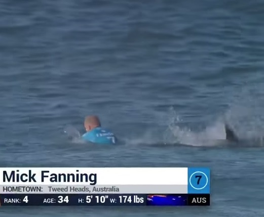 The scary incident, caught on live TV, happened Sunday in South Africa during the J-Bay Open (Jeffrey’s Bay, which is a notoriously sharky lineup) final surfing competition. Mick Fanning was had just got out in the water waiting on a wave in a split second a shark came out of nowhere attacking the surfer.
