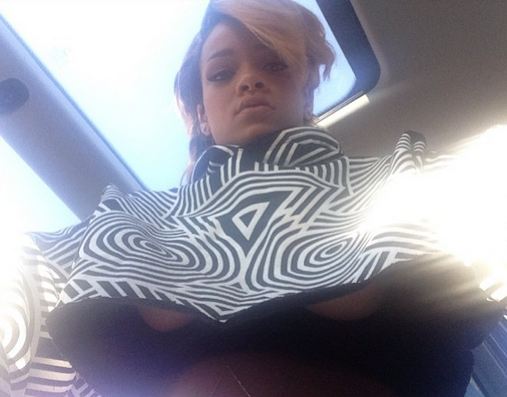 Rihanna is working this look, but while jetting with bff Melissa Forde, Rihanna exposed her melons to the camera, opsy!