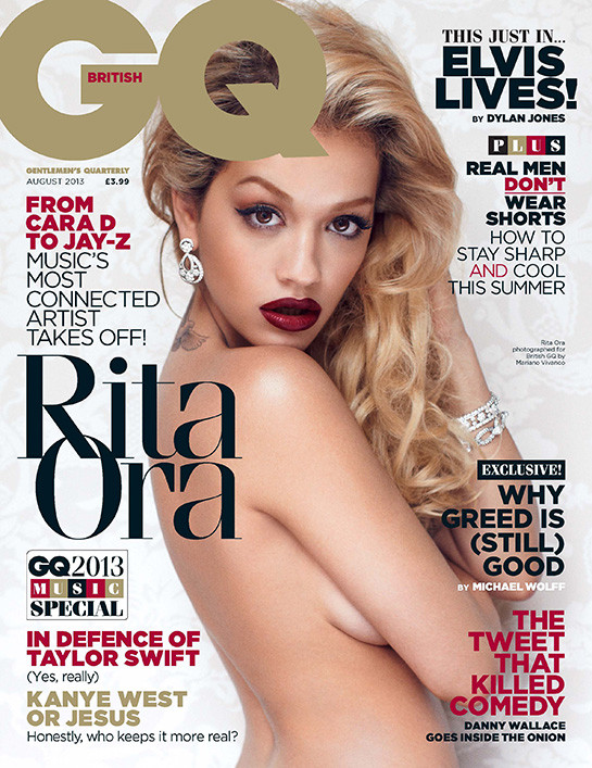 Rita Ora poses topless for the August 2013 cover of British GQ magazine.