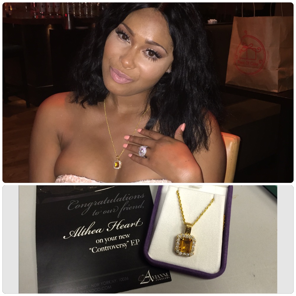 Althea was overjoyed when Benzino presented her with a beautiful 14k yellow gold necklace with a champagne citrine center and diamonds.