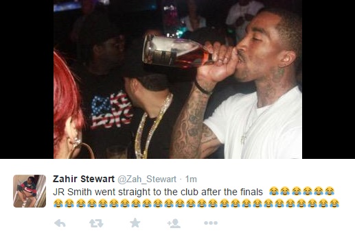 After the game was over, J.R. Smith took his loss with pride and headed to the club and we have the tweet to prove it:
