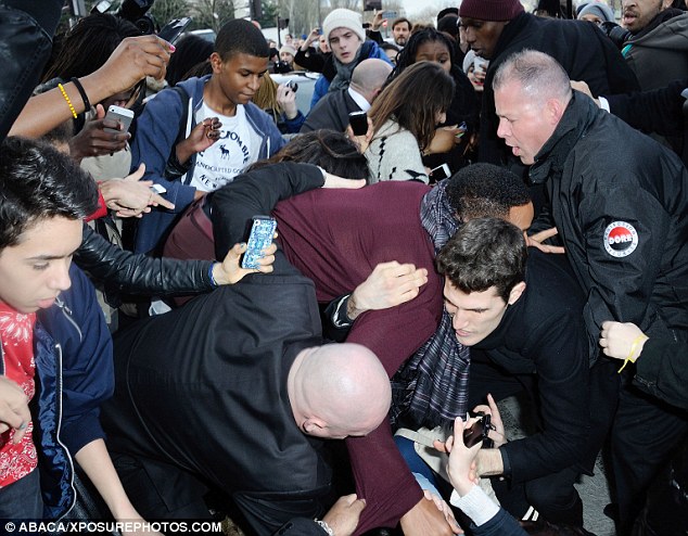 Fans appeared to use his slip to get closer to the star, while trying to take pictures on their phones as he stumbled to regain his composure.